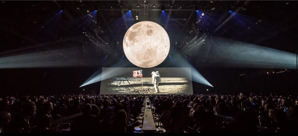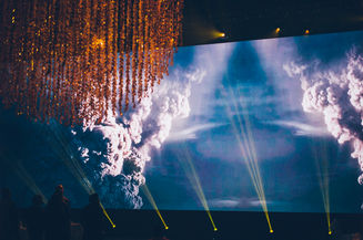 An immersive NASA-style soundscape completed the deep-space set up, later brought to life with the appearance of an astronaut who floated over the heads of the audience members.
